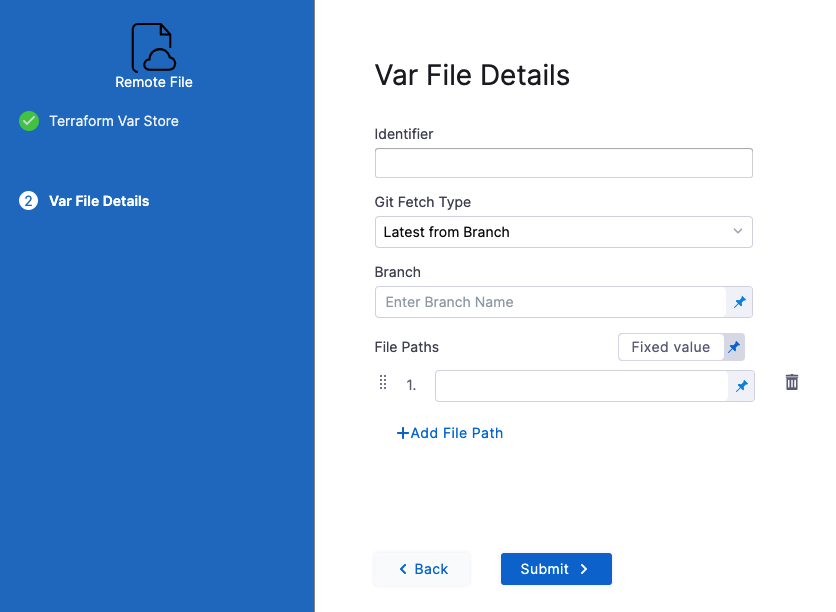 1. Click Add Terraform Var File, and then click Add Remote.