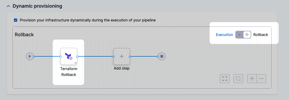 The Terraform Rollback step is automatically added to the Rollback section.