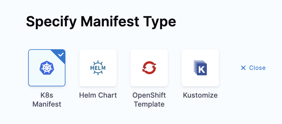 4. In Specify Manifest Type, select K8s Manifest, and click Continue.