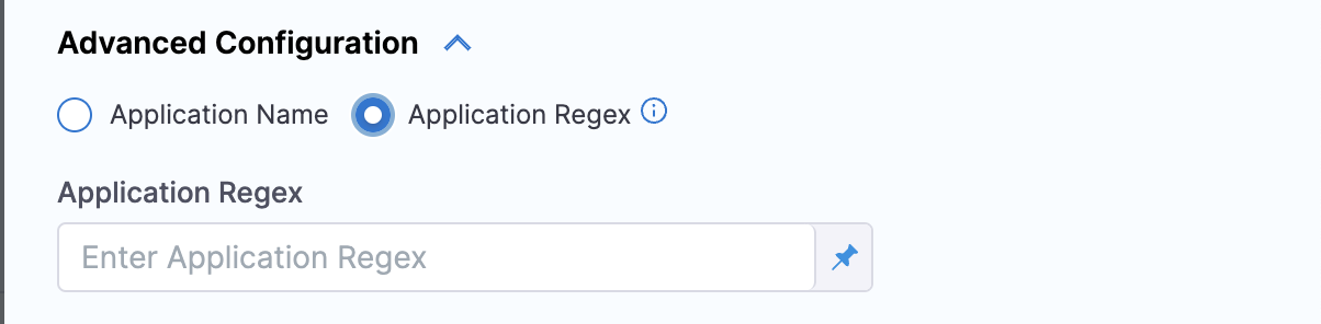 6. In Advanced Configuration, select the application you want to sync and configure the sync options. You can either can either choose an application or applications manually, or you can match up to 1000 applications using a regex filter.
