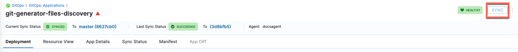 1. Click the Sync button in the top right corner of the Applications page.