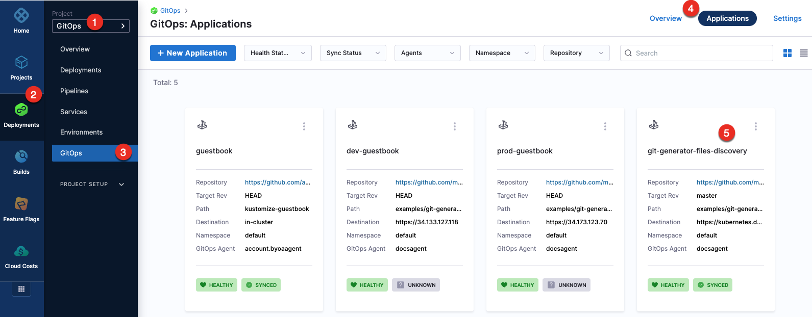 1. In your GitOps project, go to Deployments > GitOps > Applications, and then select your application.