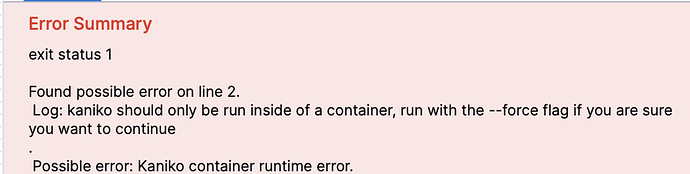 kaniko should only be run inside of a container, run with the --force flag if you are sure you want to continue