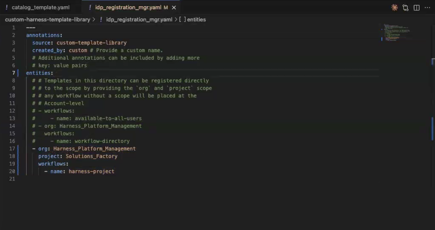 idp_registration_mgr.yamlin the repositorycustom-harness-template-library - Paste the above code snippet entry under the