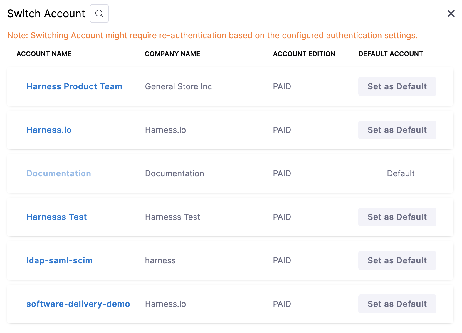 You can be a part of more than one Harness Account. This topic explains how to switch between multiple Accounts in Harness.