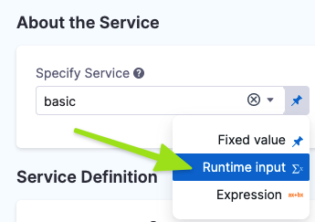 Almost any setting in a pipeline can use runtime input, including variables, artifacts, connectors, environments, infrastructures, services, secrets, step settings, looping strategies, and more.