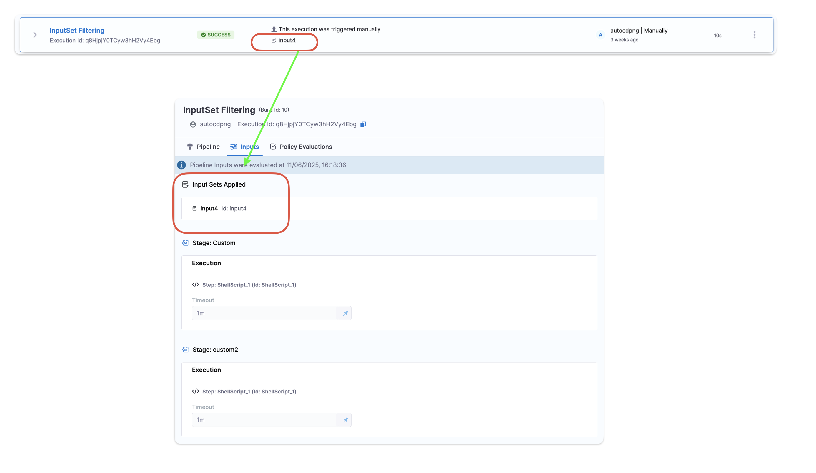 If you're using the API to track or filter executions, include the inputSetIdentifiers query parameter in your request. See API reference for details.