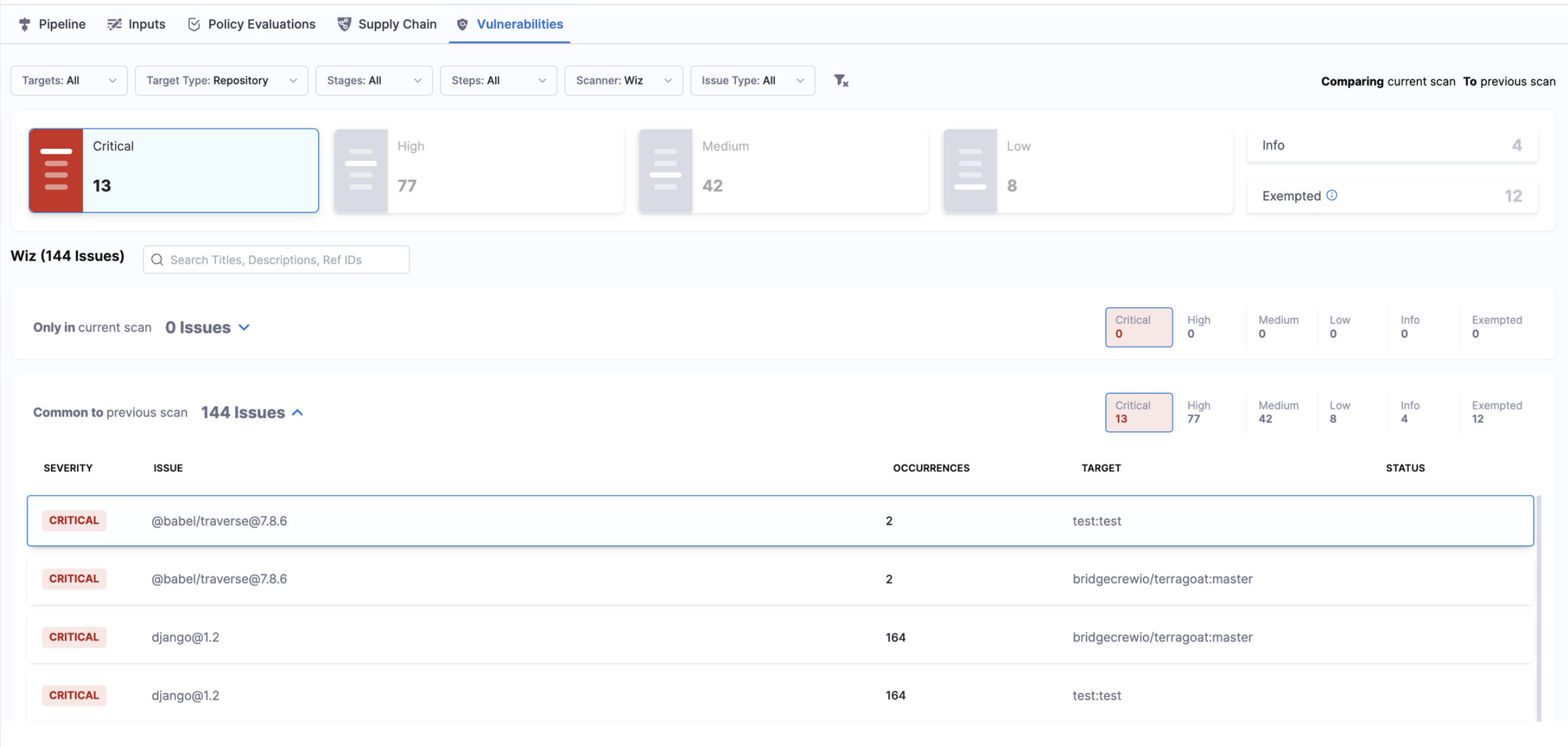 • Target Type: Filter by target type (e.g., repository, container, etc.).