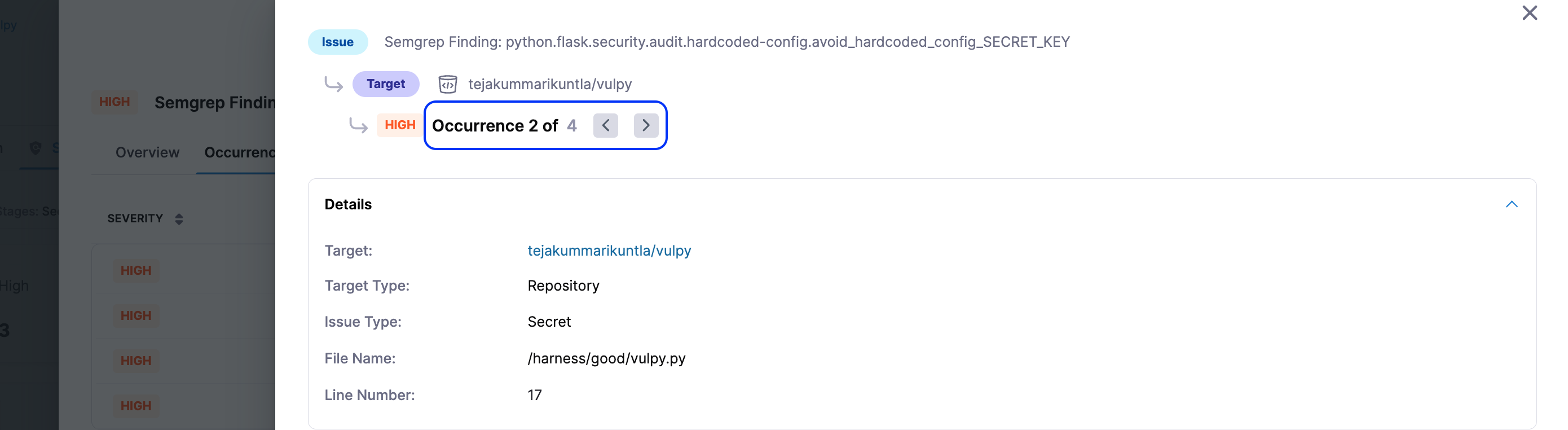 • Remediation: Steps from Harness AI and Scanner (see Fix security issues using Harness AI).